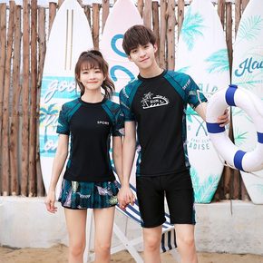 【情侣款泳衣】分体两件套大码浮潜冲浪服男日韩保守泳...