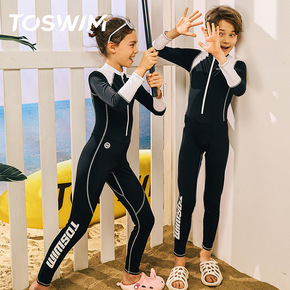 TOSWIM儿童连体泳衣男女童长袖防晒中大童速干游...