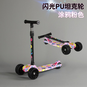 米高厂家直供坦克轮涂鸦儿童滑板车3-6-14岁三轮...