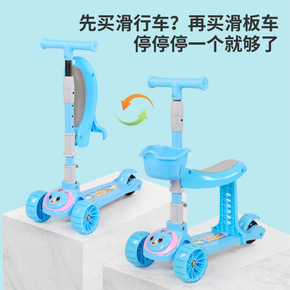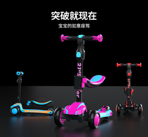 新款儿童滑板车1-3-6岁宝宝溜溜车三合一闪光可坐...