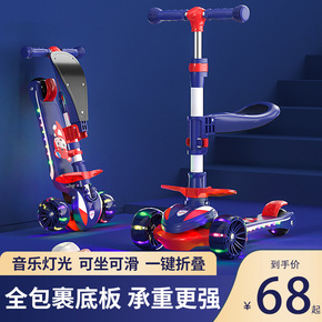 儿童新款滑板车带座2-6-8-10岁折叠音乐闪光升...