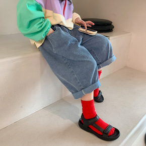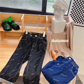 子爱 2022儿童秋季男童女童撞色弹力牛仔裤中小童...