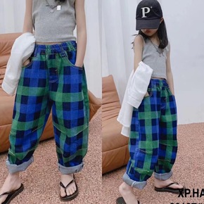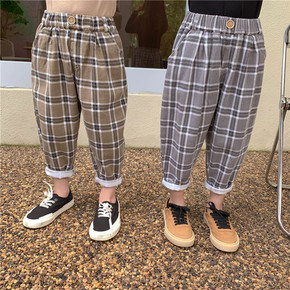 XDJ2022秋季新品韩版儿童格子裤休闲长裤男女童...