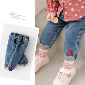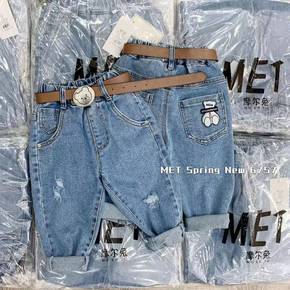 新款 80-120码男女童装脚口贴标休闲牛仔裤 ...