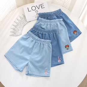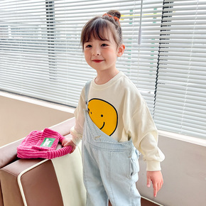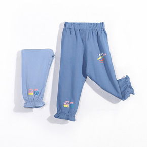 女童弹力牛仔防蚊裤2022春夏款童裤撞色笑脸印花童...