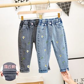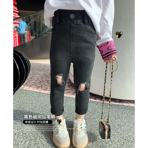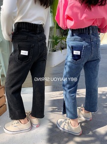 女童裤脚侧开叉牛仔裤2022早春新款韩版百搭休闲长...