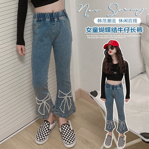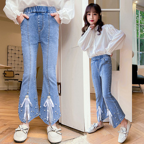 女童牛仔裤 中大女童喇叭裤 2021春秋新款儿童牛...