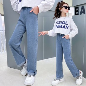 女童牛仔裤阔腿裤2021春秋季新款中大童韩版直筒长...
