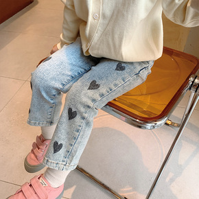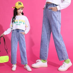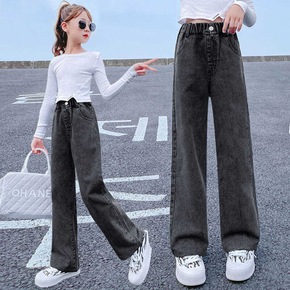 女童宽松裤子新款时尚牛仔裤长裤直筒阔腿裤儿童春秋大...