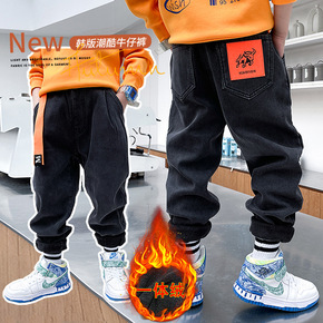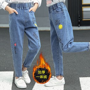 童装男童牛仔裤加绒中大童宽松休闲潮儿童一体绒裤子2...
