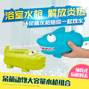 鳄鱼鲨鱼动物水枪泳池浴室婴儿澡盆可爱戏水玩具大号抽...
