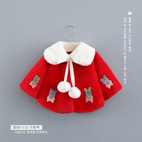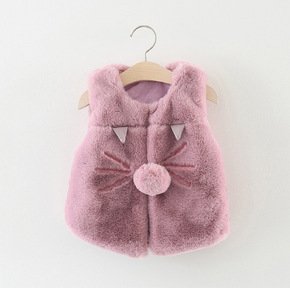 冬季0至3岁宝宝韩版皮草仿兔毛坎肩女童马甲纯色卡通...