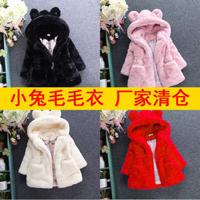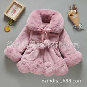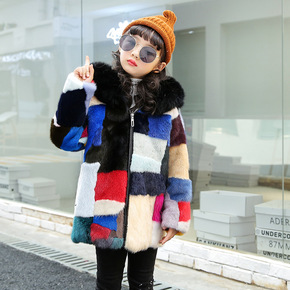 秋冬新款儿童皮草外套女童仿兔毛皮草中长款大衣宝宝冬...