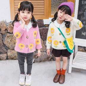 童装毛衣女女童针织开衫外套春秋2021新款儿童装毛...