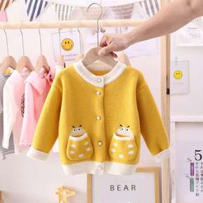 初秋2021新款女孩洋气针织开衫儿童冬装小外套20...