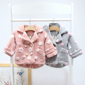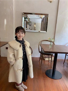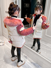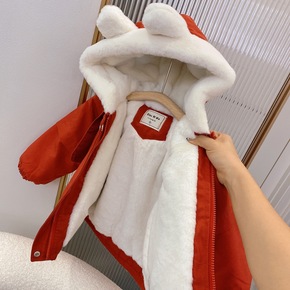 98162冬装新款童女童毛绒连帽外套儿童加厚大衣宝...
