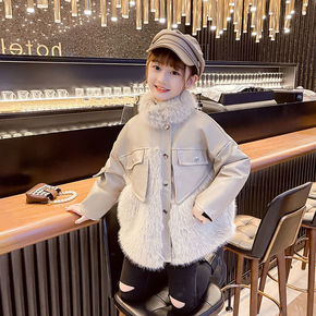 女童皮衣外套加绒加厚秋冬装中大童2021新款洋气女...