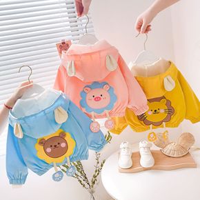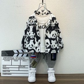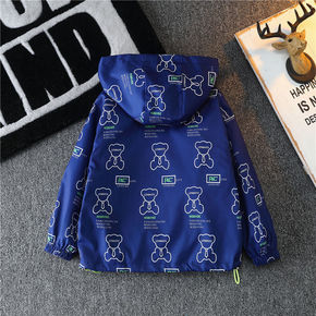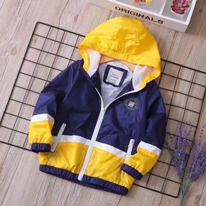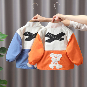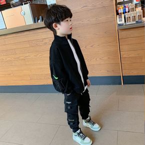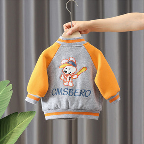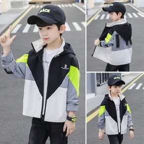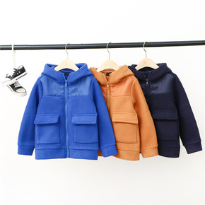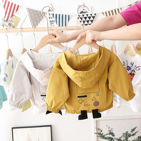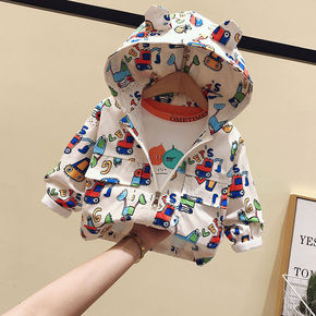 包邮中小童夹克秋装新款休闲男童百搭纯色卡通连帽长袖...