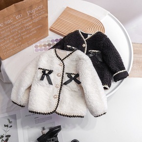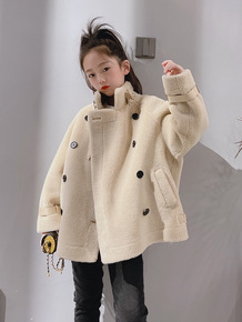 秋冬新款女童男童双层纯色摇粒绒外套中大童休闲宽松连...