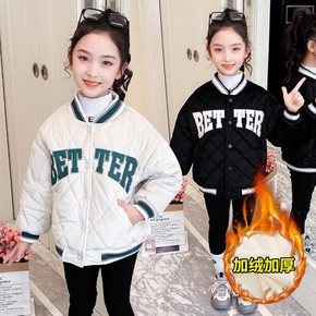 女童加厚外套秋冬2021新款洋气儿童加绒棒球服中大...