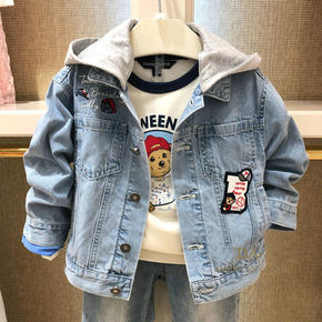 童装2021春秋款男童牛仔外套连帽中大童洋气夹克...