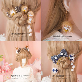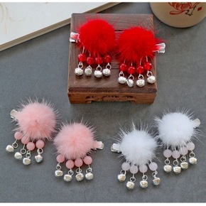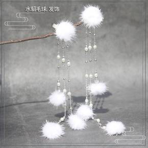 水貂毛球可爱女童发饰古装汉服发夹仙水貂发夹对夹儿童...