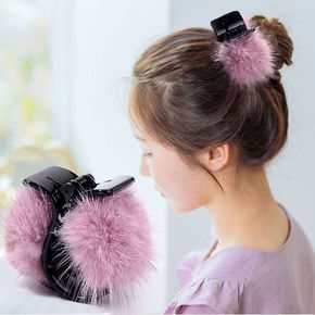 韩国水貂毛球中号抓夹发夹发抓淑女成人盘发夹子小号刘...