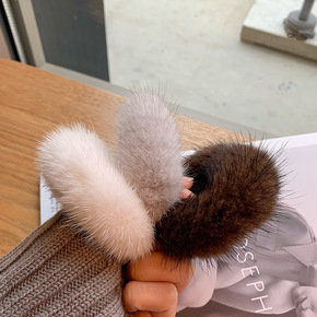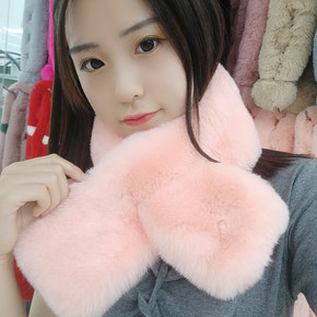 简约百搭獭兔毛皮草围脖漱兔毛编织小脖套弹力头巾发带...