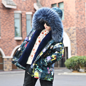 20冬儿童新款派克服男童大毛领中长款外套可拆卸棉服...