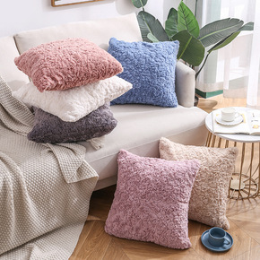 大兔毛压花毛绒抱枕亚马逊家居用品双面纯色沙发靠垫套...