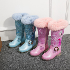 2022秋冬新款女童高跟长筒靴小女孩艾莎公主靴加绒...