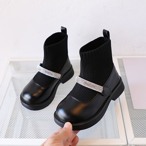 批发一件代发2022秋季新款女儿童针织短靴韩版水钻...