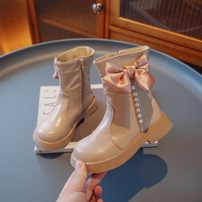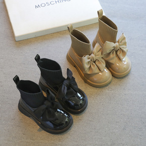 厂家现货女孩小皮靴韩版蝴蝶结休闲马丁靴弹力领口宝宝...