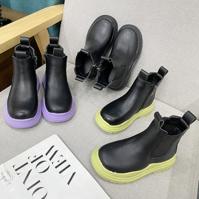 2022年秋冬短靴男女童软底中筒儿童马丁靴子新款英...