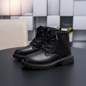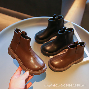 儿童皮靴2022秋冬新款儿童马丁靴英伦风男童短靴软...
