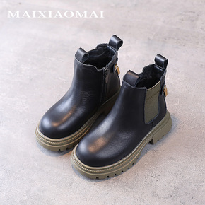 迈小迈冬季加绒切尔西儿童皮靴2022新款真皮保暖男...