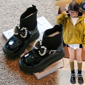 7088女童靴子袜靴儿童皮靴公主靴2022秋季新款...