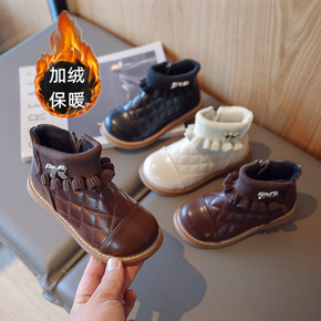 儿童马丁靴二棉秋冬男女童平底黑色短靴中大童加绒保暖...
