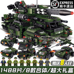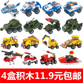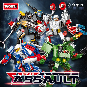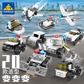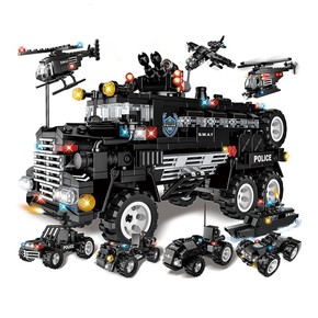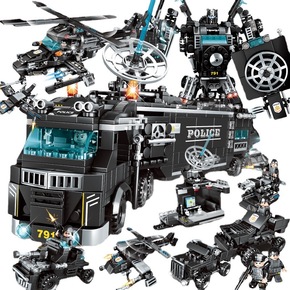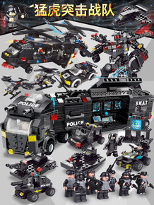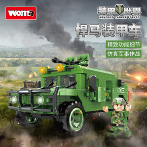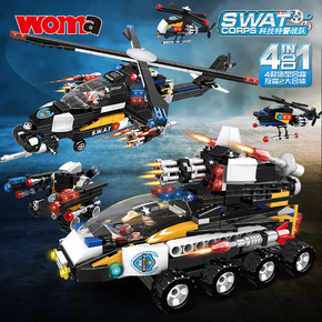 沃马积木玩具特警男孩子益智力拼装6装甲7汽车8玩具...