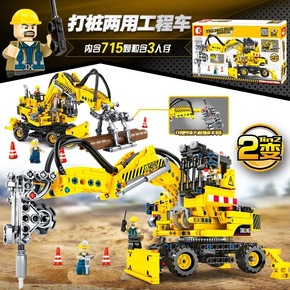 森宝积木玩具男孩拼装工程汽车儿童益智组装拼图模型拼...