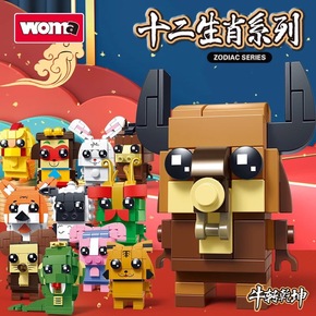 沃马积木匹配拼装玩具男孩益智组装十二生肖动物小人系...