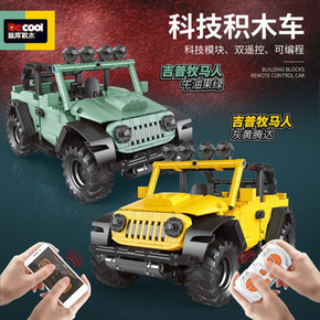 积木男孩子儿童玩具益智拼装遥控车牧马人车越野汽车模...
