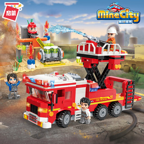 积木6男孩子7儿童拼装8益智力4-9玩具消防车3-...