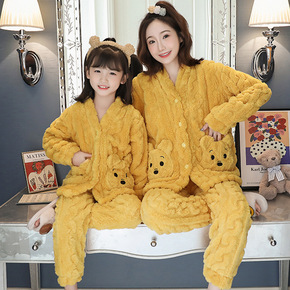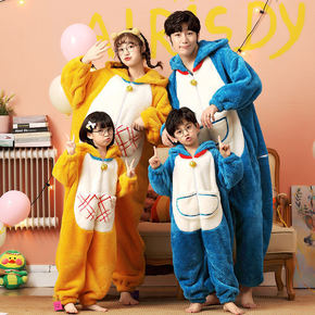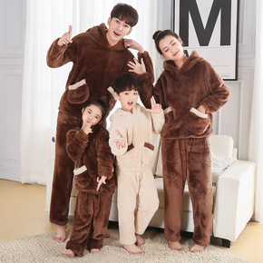 连体睡衣母女母子亲子装一家三四口秋冬款加厚珊瑚绒儿...