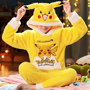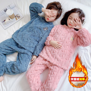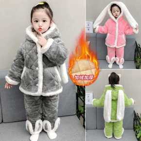 秋冬儿童法兰绒睡衣男女童加绒加厚珊瑚绒家居服暖暖套...