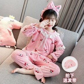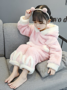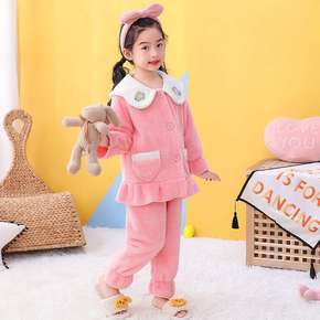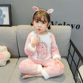 新款儿童睡衣女孩冬天珊瑚绒冬季加厚长袖卡通宝宝可爱...
