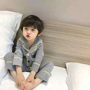 宝宝睡衣男女童夏季空调服儿童套装家居服中大童格子薄...