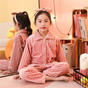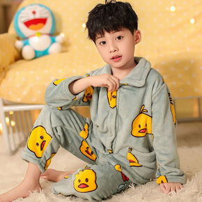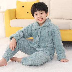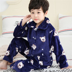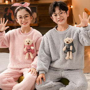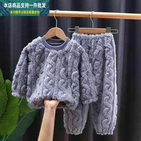 男童睡衣秋冬季儿童法兰绒女童珊瑚绒加厚小男孩中大童...