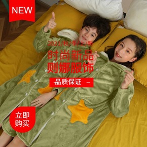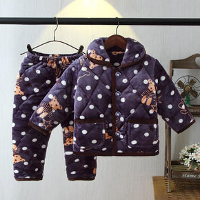 儿童睡袄冬季加厚夹棉睡衣法兰绒男童加绒保暖珊瑚绒厚...