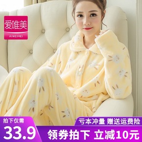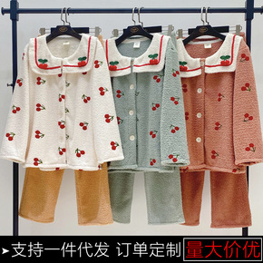 睡衣女冬季11533#甜美套装可爱樱桃提花娃娃领软...